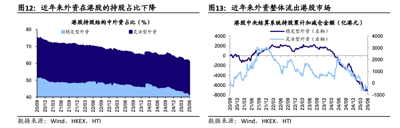 相对的,近年外资在港股的持仓占比持续下降,港股对外资的依赖逐步减弱。