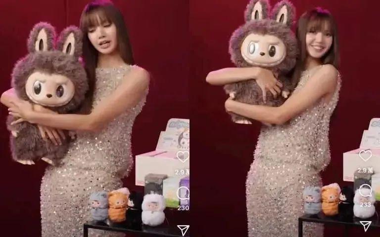 2024年,Lisa多次在公开场合携带LABUBU挂饰,并在社媒上发布与LABUBU的合影。