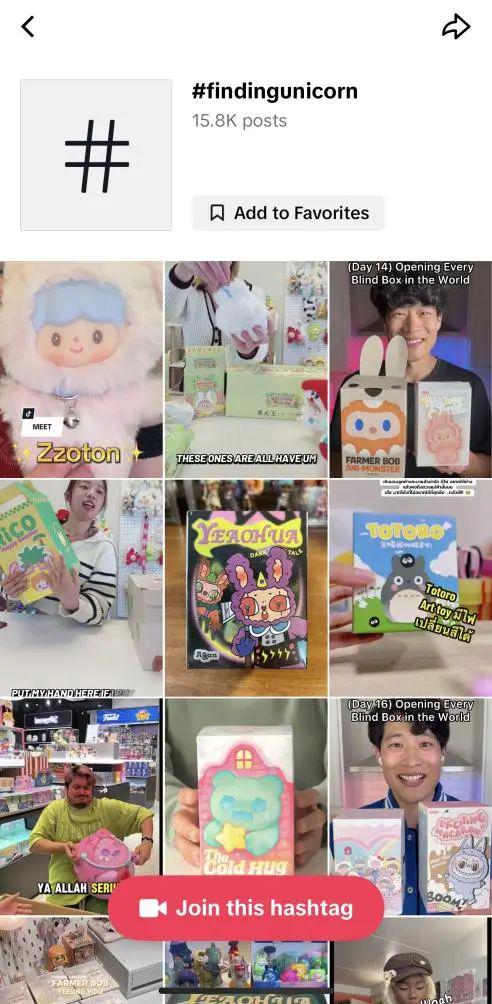 潮玩品牌FindingUnicorn在TikTok的相关视频