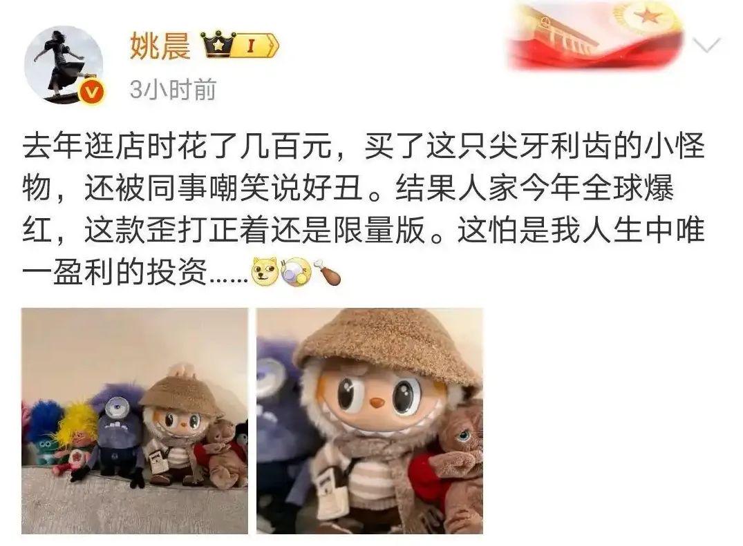 姚晨微博上晒LABUBU