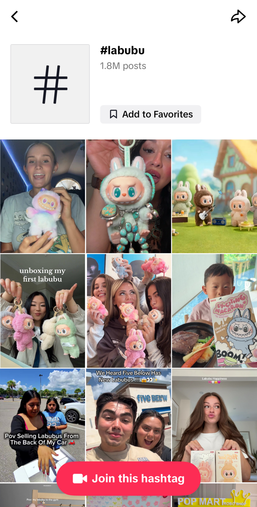 TikTok的#labubu词条下有超过180万条投稿视频