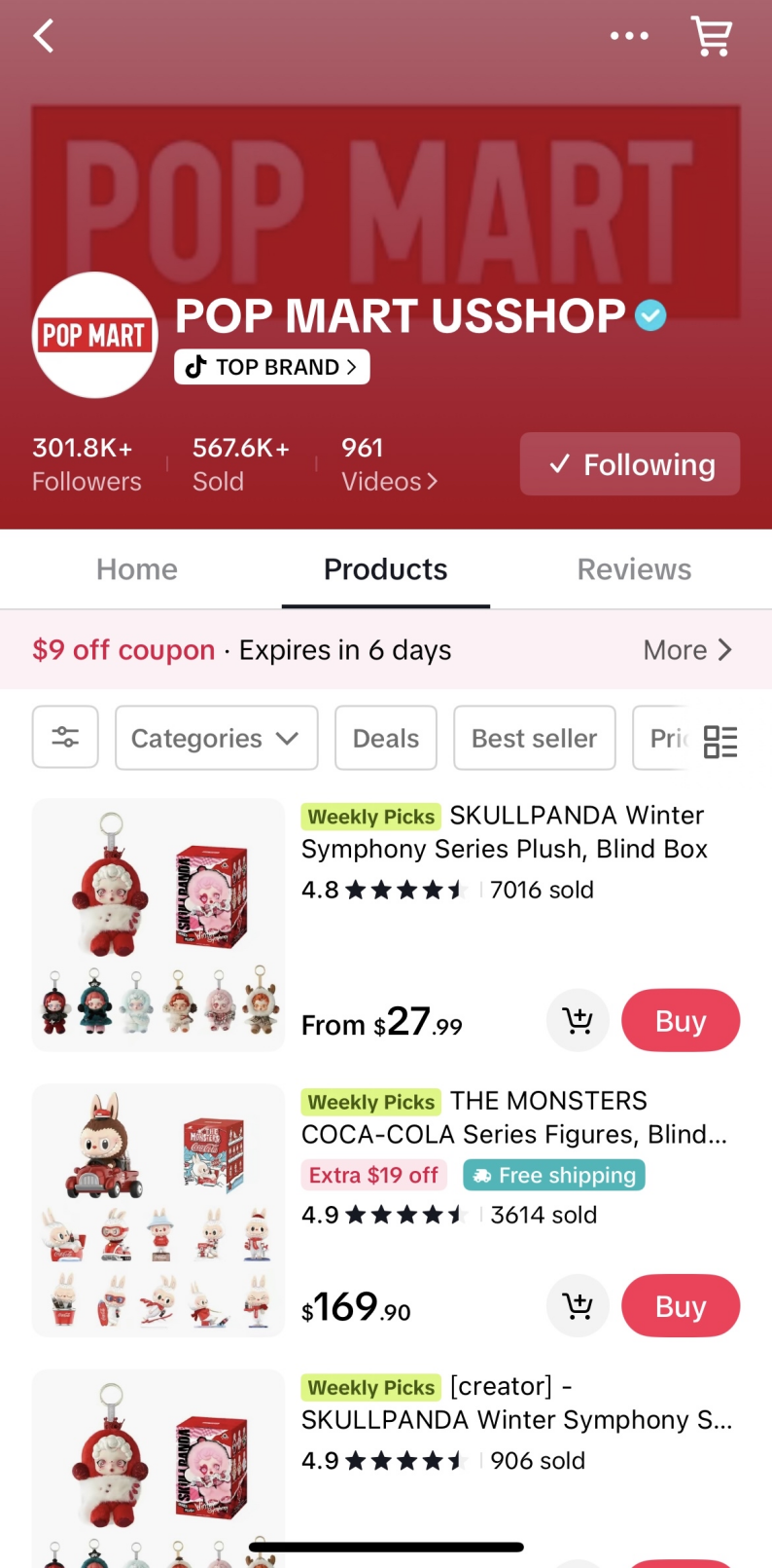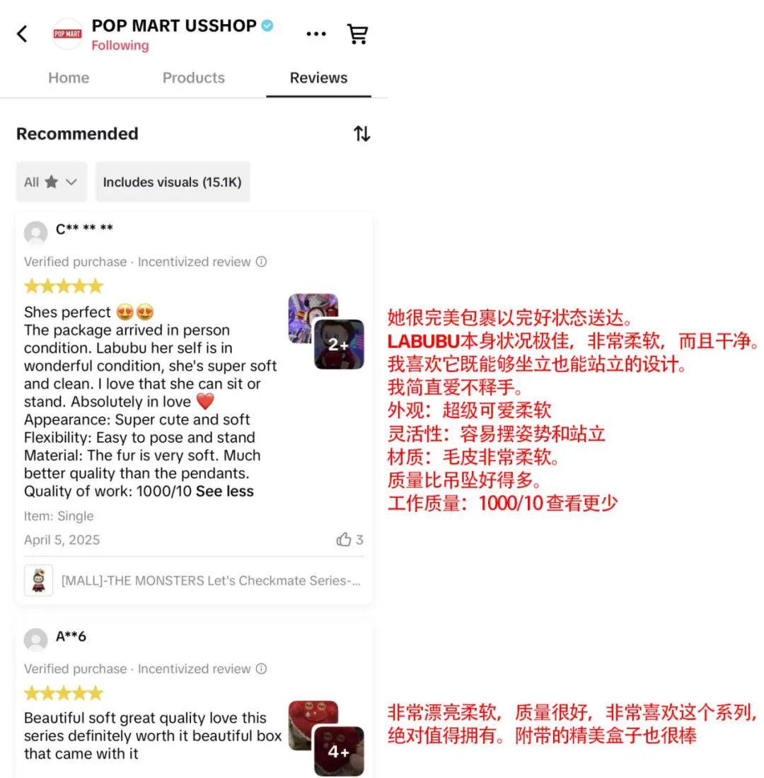 泡泡玛特TikTok Shop美国官方店铺消费者评论