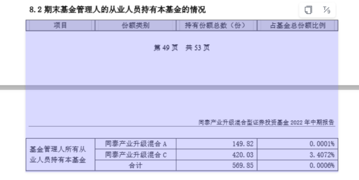 一个季度之后,同泰基金内部又豪掷百元,买了110份C份额,合计持仓“高达”570份!