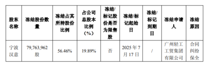 宁波汉意股份被冻结的基本情况;图片来源:公司公告