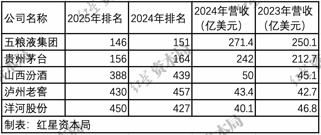 相比于2024年,白酒企业上榜数目无变化,但具体排名有所变动。