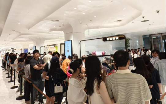 8月24日,老铺黄金产品年内第二次提价在即,券商中国记者实地探访了北京skp老铺黄金门店。商场刚开始营业不久,柜台前的队伍已经蜿蜒如龙,工作人员提示,如果彼时加入,至少需要2至3个小时才能进店。