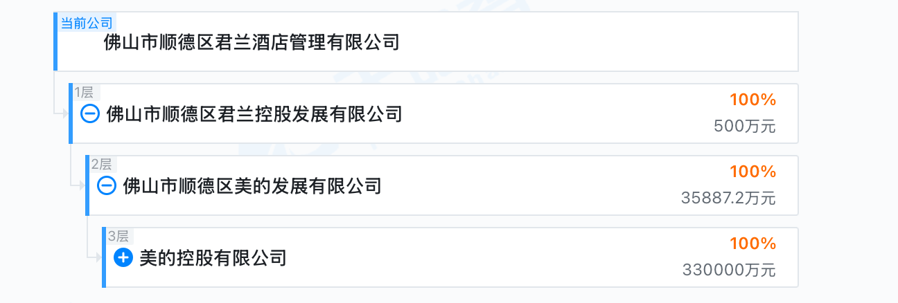 股权穿透结果显示,君兰酒店的幕后持有者,正是美的集团大股东美的控股。