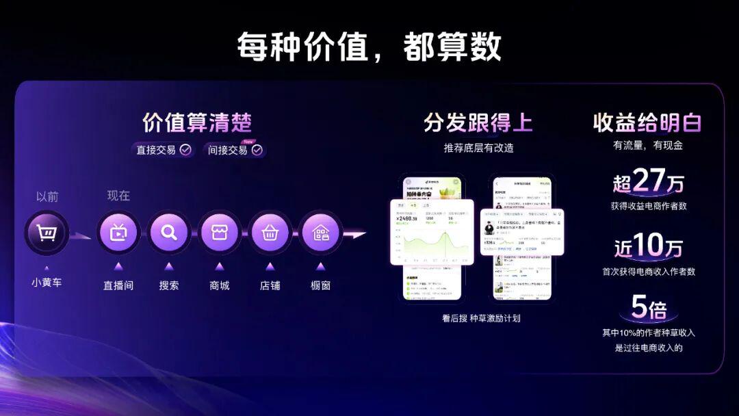 截至8月31日,已有超过27万作者通过参与“种草激励计划”获得收益。其中35%以上的电商作者,是第一次拿到电商收入,甚至有不少作者通过“种草”获得的收入,达到了此前电商收入的5倍以上,大大激发创作者们的创作热情,产生更多、更好的作品。