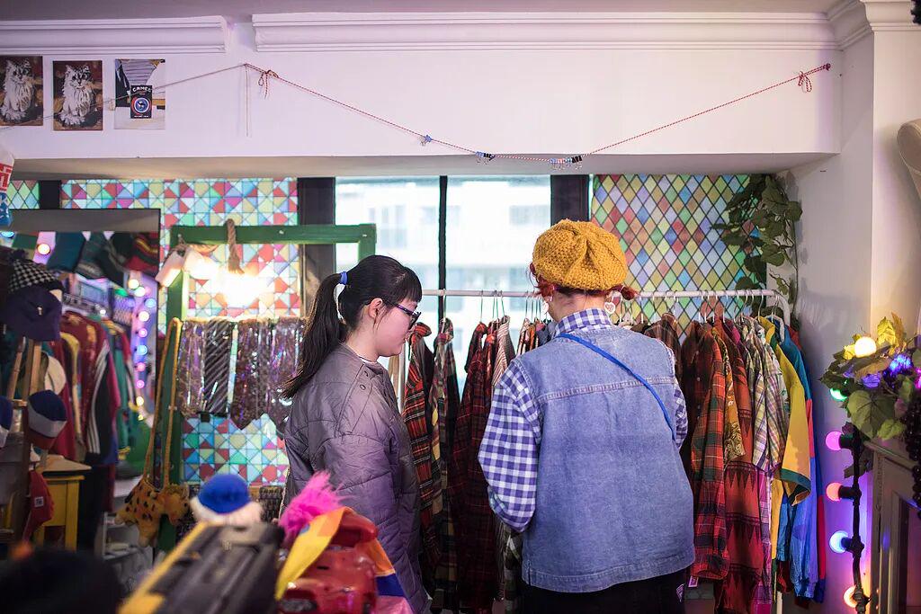 到了中国,古着也从亚文化发展成一种主流情绪。北京鼓楼东大街、上海灵石路、广州中山六路等街区的古着店如雨后春笋般扎根生长,形成一个个复古文化地标。就连不少二三线小城,也挂起了“中古”招牌,迎接这场“慢时尚”的回潮。