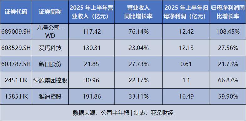 今年上半年,九号、爱玛、雅迪等行业头部都实现了营收、利润双增长。其中涨势最为迅猛的九号,上半年净利润暴涨108%至12亿,同比翻倍。