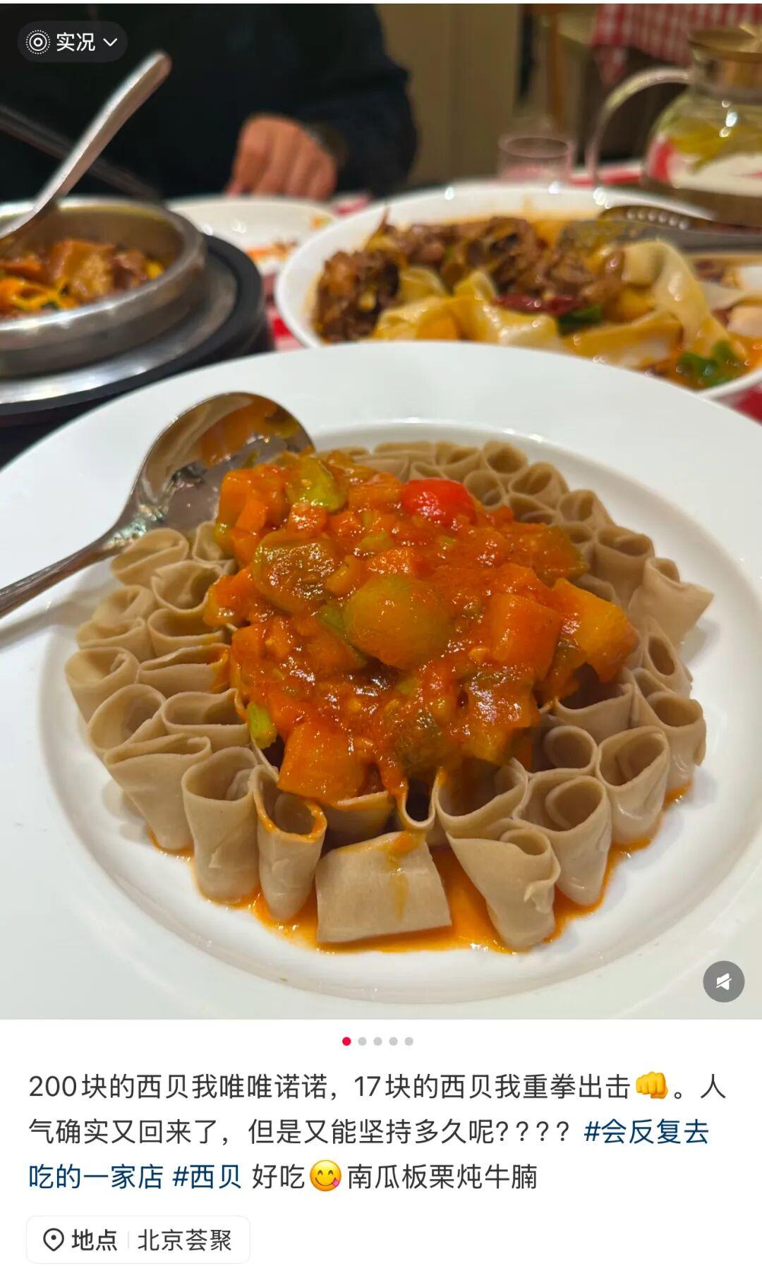 10月1日,以成都某门店为例,根据此前西贝菜单对比今日最新的西贝小程序菜单发现,此前79元一份的小锅牛腩价格已调整为76元一份,下降幅度约为4%,草原嫩烤羊排从此前的119元降价为99元,下降幅度约为16.8%;不过,也有小炒草原牛等菜品,价格并未下降。