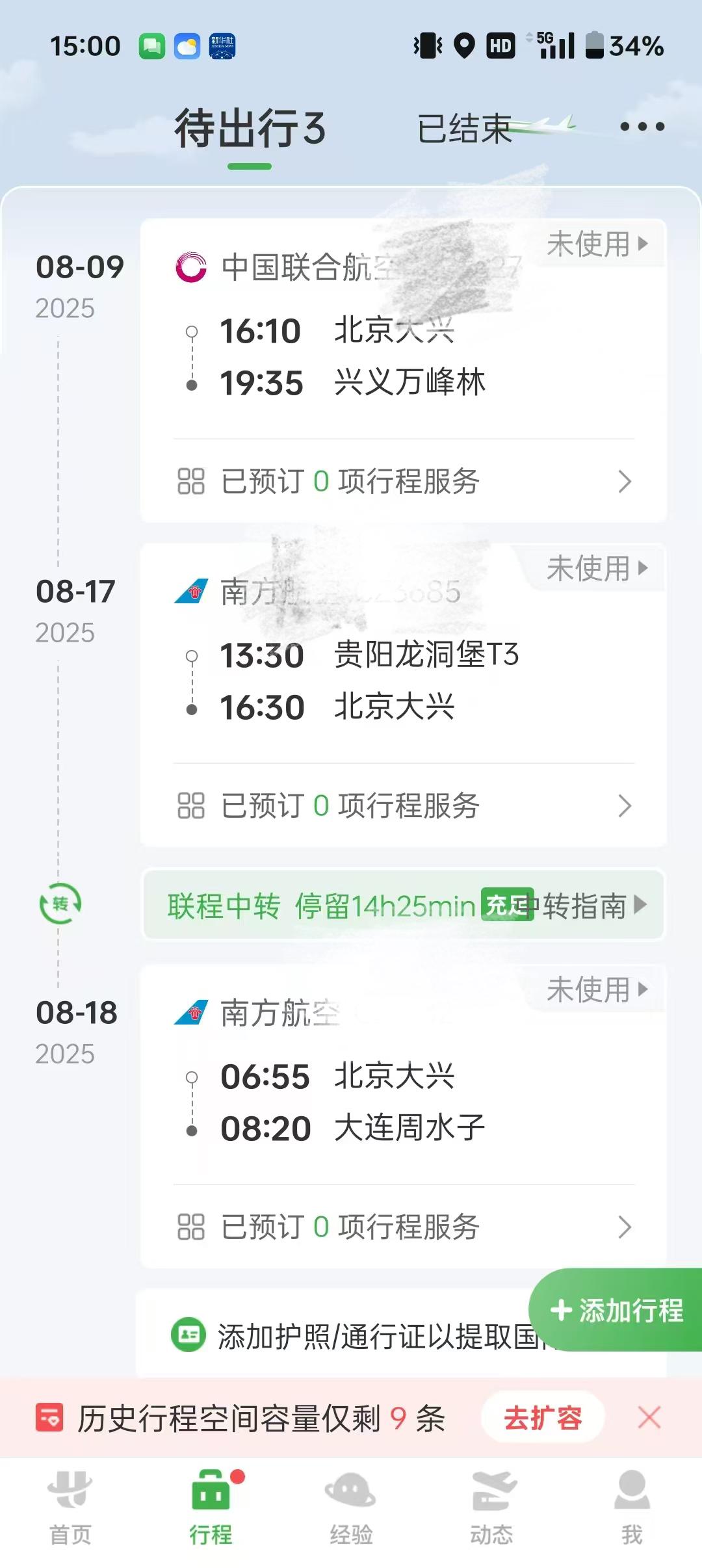 返程时,宋盈盈购买了8月17日贵阳飞大连、中转北京的机票,总价格为842元/张。她称,航班从贵阳龙洞堡机场起飞的时间是17日下午1点30分,时间点很好。当天贵阳直飞北京且起飞时间点比较好的航班,经济舱价格都在1000多元/张。