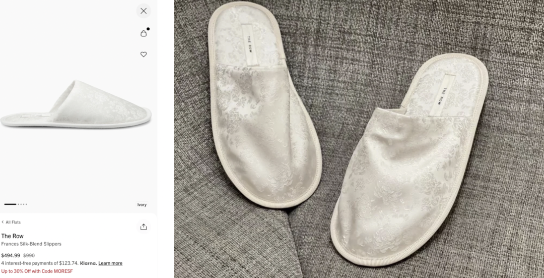 而有“女高管的优衣库”之称的美国奢侈品牌The Row,更是将一双和酒店一次性拖鞋撞款的Frances拖鞋卖到了接近8000元人民币的价格,主打丝绸混纺和皮革鞋底。但显然,目前还没有酒店采购奢侈到这种程度。