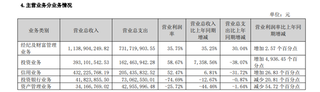 拉动此轮业绩上涨主要受经纪、投资和信用业务这“三驾马车”拉动。