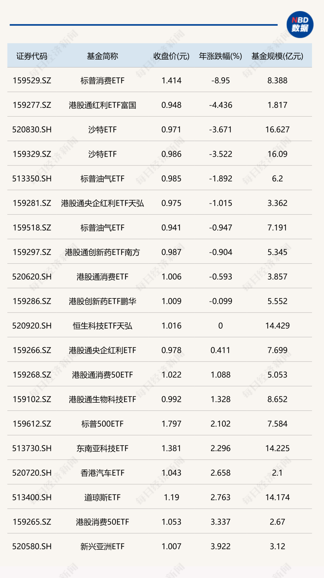 此外,港股通红利ETF富国、沙特ETF等跌幅超3%。