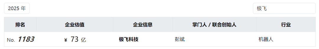 虽然招股书并未透露公司估值,但今年7月,胡润《2025全球独角兽榜》,其中提及极飞科技估值为73亿元,位列榜单第1183位。