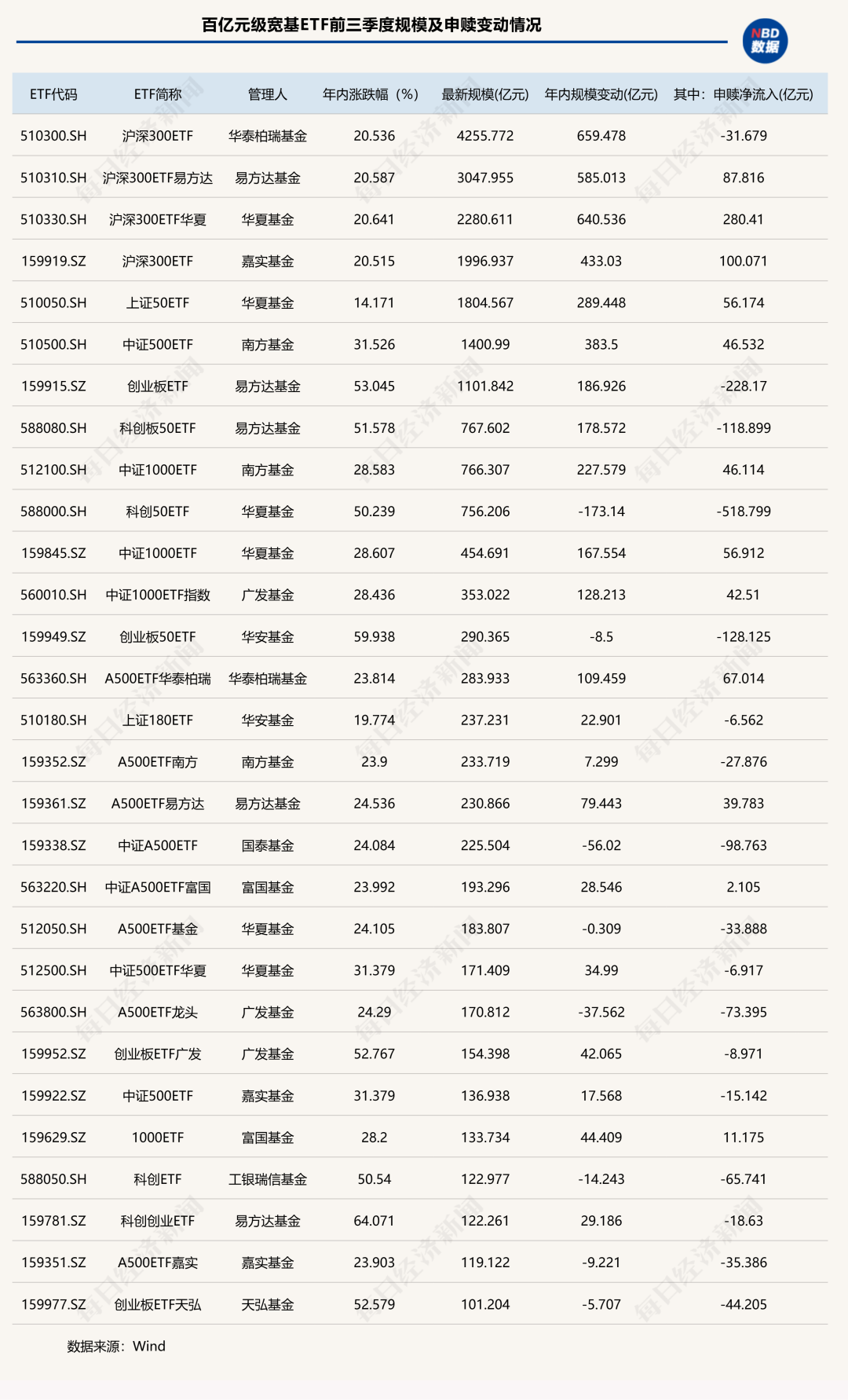 29只宽基ETF规模超100亿元,其中过半产品遭净赎回
