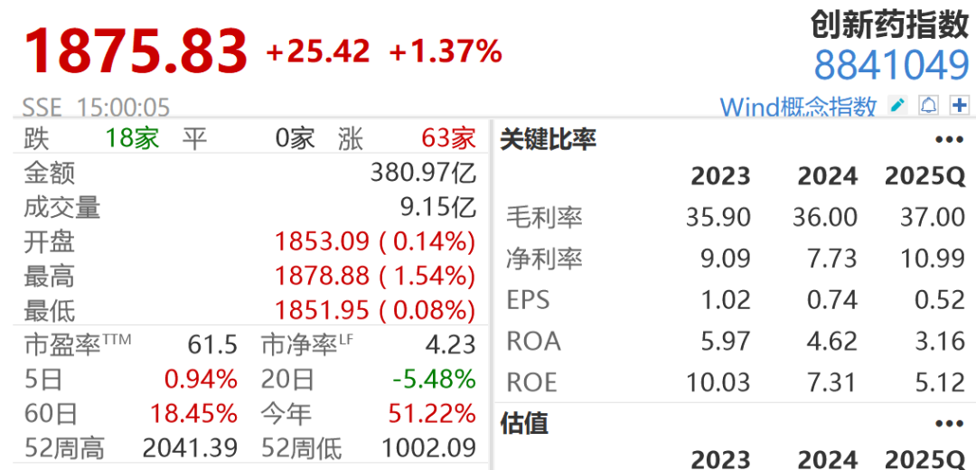 2025年以来,我国创新药领域动态频频,重磅合作交易接连落地、多款核心药物研发达成里程碑进展,一系列积极信号推动创新药板块持续成为资本市场焦点。截至9月30日收盘,Wind创新药指数年内涨51.22%,板块整体景气度显著提升。
