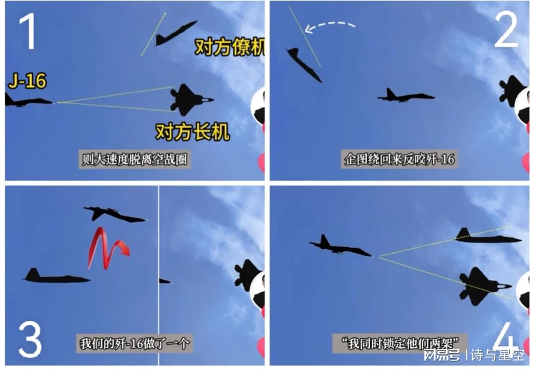 有网友根据描述,进行了事件还原,从还原图可以看出,J16对F22进行了戏耍。