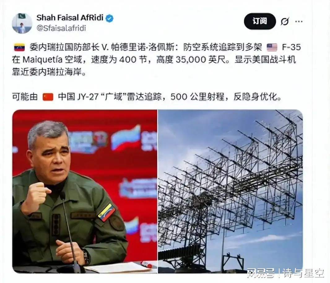 委内瑞拉使用的是中国产的JY-27反隐身米波雷达,这是南联盟大使馆被炸之后,中国专门针对美国隐形战机研发的反隐身雷达。
