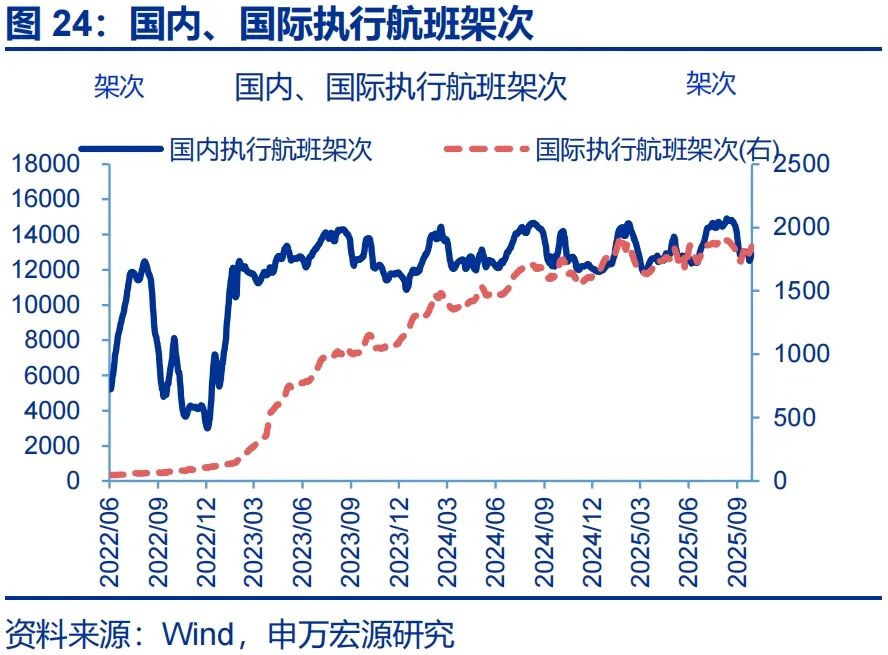 服务业中,新订单指数明显回落。9月,服务业主要分项中,新订单指数回落较大(-1.0pct至46.7%)。高频数据显示,9月,全国迁徙指数同比下行8.5pct至5.6%;国内、国际执行航班架次同比均有下行,分别较前月回落0.5、0.7pct至1.1%、10.2%。