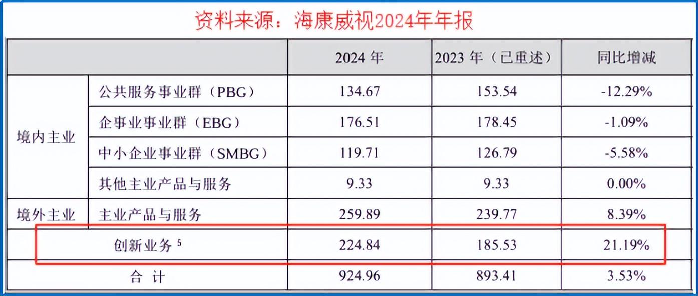 2024年,海康威视创新业务营收突破224亿元,同比增速超过21%,远高于传统业务。