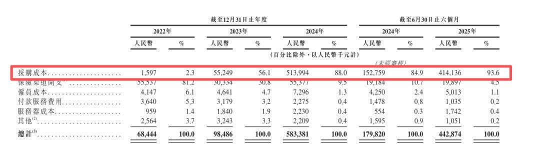 在这些业务中,除了最后一项,其余均严重依赖外部供应商,轻松健康仅充当“中介商”角色,导致采购成本高企。2022年,其采购成本占总经营成本的5.6%,今年上半年该数字飙升至93.6%。