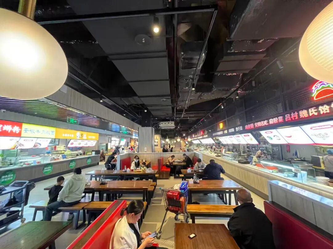 在卖场收银线外的“商店街”,淘小胖安阳店做了20个左右档口,以及堂食区,整体呈现出一个中小型美食城的形态。