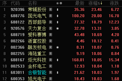 在技术突破与政策红利的双重驱动下,可控核聚变概念的热度持续攀升。10月9日,可控核聚变概念集体爆发。截至中午收盘,可控核聚变概念指数大涨6.9%。个股方面,国光电气收获20CM涨停,西部超导涨18.79%。此外,浙富控股、融发核电、合锻智能等多只个股收获10CM涨停。