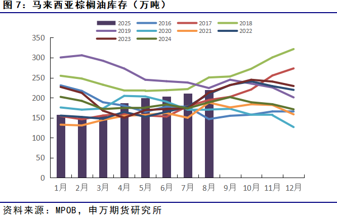 油脂:国庆假期期间马棕油偏强运行,美豆油偏强震荡。马棕9月产量出现下滑,根据MPOA数据显示马来西亚9月1-30日棕榈油产量预估减少2.35%。马棕产量下降使得库存减少预估增强,本月MPOB报告即将发布,路透社预计马来西亚2025年9月棕榈油库存为215万吨,比8月下降2.5%,为七个月来首次下滑;产量预计为179万吨,比8月下降3.3%;出口量预计为143万吨,环比增长7.7%。马棕产量及库存下降的预期给棕榈油行情提供支撑,同时考虑到棕榈油需求旺盛,主要需求国印度、中国节日备货都将提振后期油出口需求。此外印尼棕榈油库存也处于偏低位置,后期棕榈油供需趋紧或将对棕榈油价格构成长期支持。