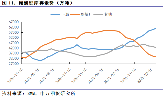 碳酸锂:碳酸锂产量环比增长,锂辉石提锂为主力。江西矿端扰动被其他区域增产抵消,影响有限。储能领域爆发,动力电池需求温和增长。全产业链去库加速,但绝对水平仍高。锂辉石提锂成本约6.5万元/吨,云母提锂亏损,行业盈利分化。:社会库存13.7万吨(同比高9.3%),但冶炼厂库存降至2.7万吨(同比低30.7%),锂辉石到岸价降至800美元/吨短期受储能订单支撑,价格可能阶段性反弹,但高库存压制上方空间。