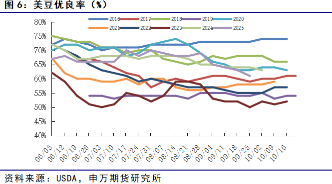 蛋白粕:国庆假期期间CBOT期价偏强震荡为主。虽然目前美豆陆续收割,但美国总统表示将与中方讨论大豆贸易的消息给美豆行情带来提振。特朗普表示将与中方领导人会面,讨论恢复美国大豆对华出口这一关键议题。由于中美贸易摩擦影响,使得今年中国持续缺席新季美豆。即使政府采取了包括财政援助安抚农民以及寻求其他出口市场,但由于中国是美国大豆最大的买家,中国进口需求的缺失还是给美豆出口带来了巨大的压力。因此受到中美贸易改善消息影响市场对于美豆出口前景转好,提振国庆假期期间美豆期价表现。USDA发布的季度库存报告显示,截至2025年9月1日美国旧作大豆库存总量为3.16亿蒲式耳,同比下降8%,略低于此前供需报告给出的预估,报告对市场影响中性。而本月USDA报告也即将发布,由于此前美国农业部对于单产的调整幅度有限。因此在本月报告中对美农下调单产的预期较高,主要考虑到8月末以来美豆产区天气转差导致美豆优良率下滑。因此若中美达成贸易协议叠加美豆单产下调可能性较大,美豆结转库存将趋紧,美豆期价下方支撑较强。而对于国内而言可能因为中美贸易的改善连粕价格或承压,但若美豆价格上涨则带来进口成本的提升,对于国内豆粕或呈现先跌后涨的格局。