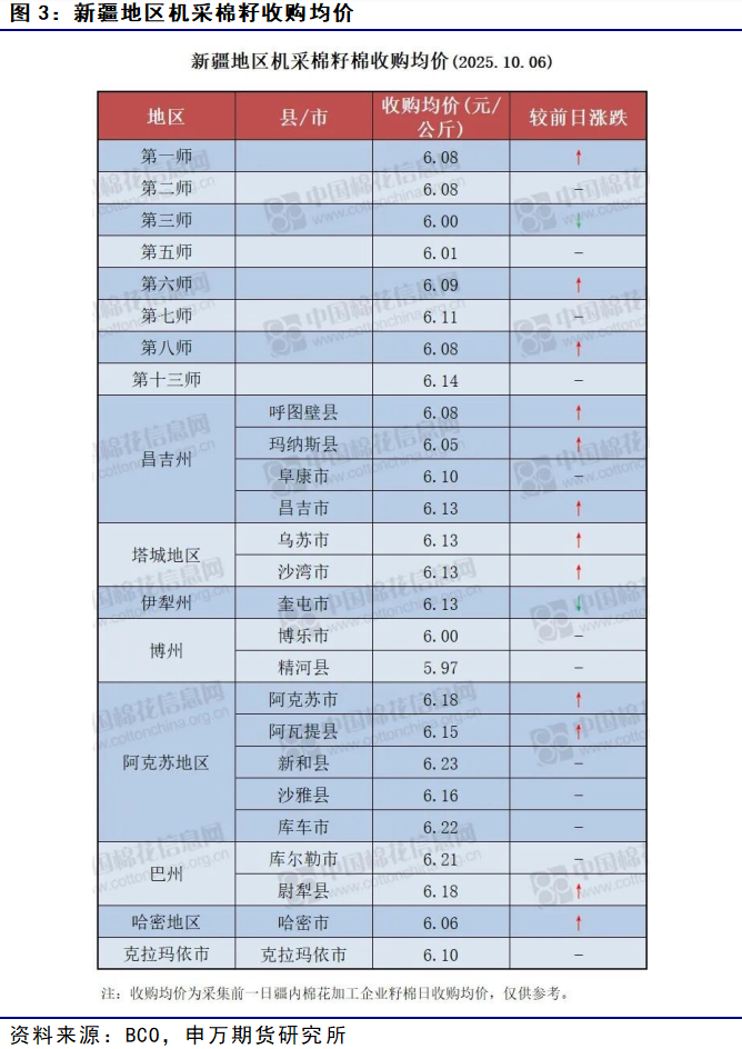 棉花:假期期间美棉走势偏弱,受美国联邦政府“停摆”带来的市场信息滞后影响,美棉苗情数据暂停发布。因上周采摘进度较五年均值相同,市场预计采摘暂未受影响持续推进,对盘面形成一定压力。国内方面,虽然新棉预售抢收预期对棉价有所支撑,但是新年度丰产预期以及产业下游温吞难见明显起色,纺企对原料采购意愿不强,棉价上行动力不足。预计短期维持偏弱走势,后续关注新花大量上市后的卖套保压力。