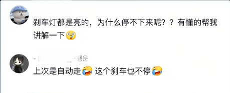 由于车辆坠海视频在社交平台上广泛流传,于是便有网友在相关视频的评论区发出质疑:“刹车灯都是亮的,为什么停不下来呢?”另有网友表示:“上次是自动走,这个刹车也不停。”言语之间似乎是在认为小米SU7存在质量问题。