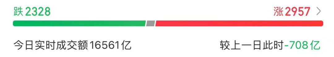 沪深两市半日成交额1.64万亿,较上个交易日缩量713亿。全市场超2300只个股下跌。