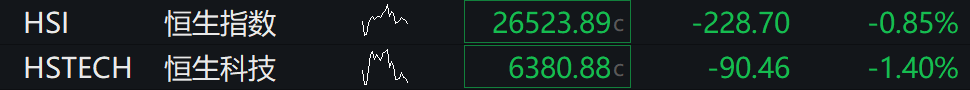 恒指低开0.85%,恒生科技指数跌1.4%。锂电池、有色等热门行业普遍回调,宁德时代、洛阳钼业跌超3%;科网股多数走弱,阿里巴巴跌超2%。金叶国际集团上市首日高开500%。