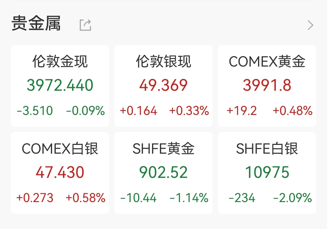 10月10日,现货黄金跌破4000美元/盎司关口。截至今日11时12分,现货黄金价格报3972.44美元/盎司。COMEX黄金期货主力最新报3991.8美元/盎司,日内涨0.48%。