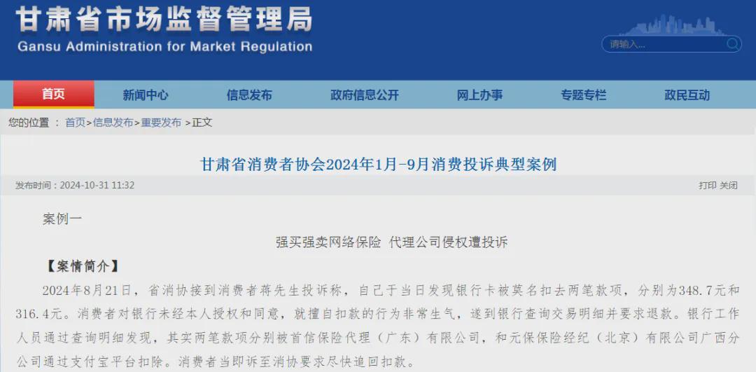 去年,元保就曾被网友投诉“诱导投保”、“自动扣费”等,一度遭舆论诟病。去年11月,元保被某省市场监管局通报其强买强卖网络保险涉消费侵权一案。