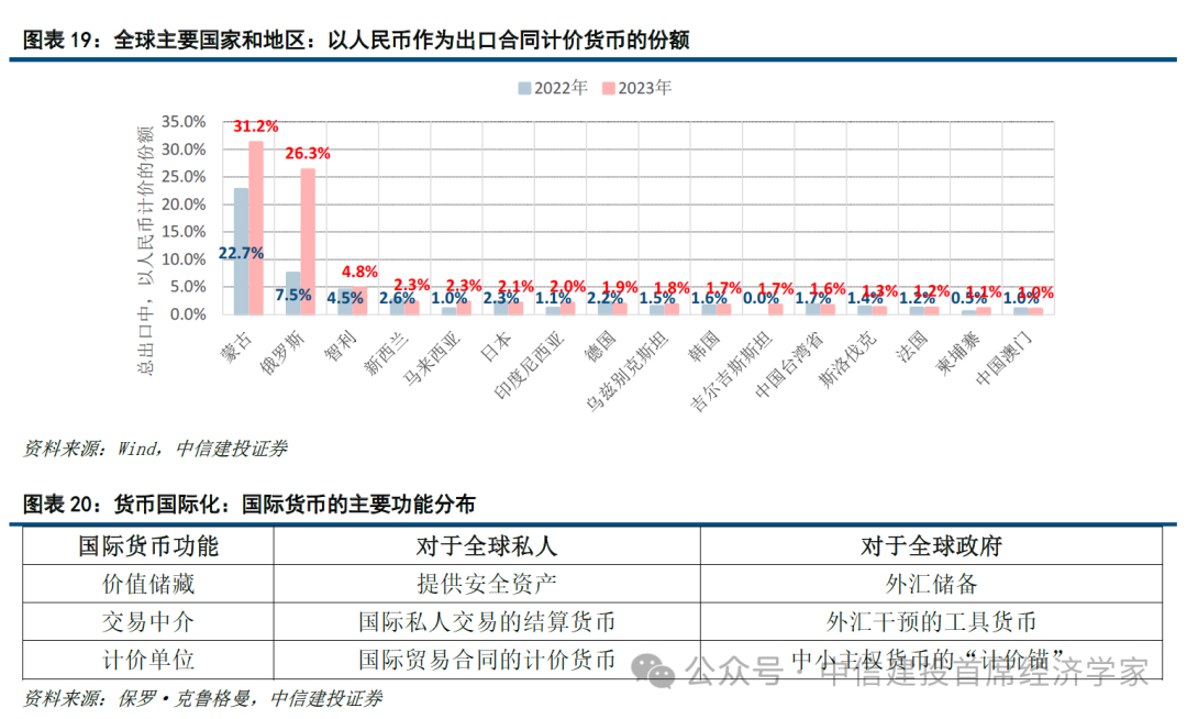 展望十月及四季度,人民币国际化将加力推进。如图表19-图表20所示,在全球主要国家和地区中,以人民币作为合同计价货币的份额,远低于我国在国际贸易体量,后续有巨大的提升空间。未来,推进铁矿石等大宗商品进口的人民币计价,预计可持续成为推进人民币国际化的重要抓手,与推进人民币的国际支付、国际储备等工作一道,进一步打开人民币国际化的空间。