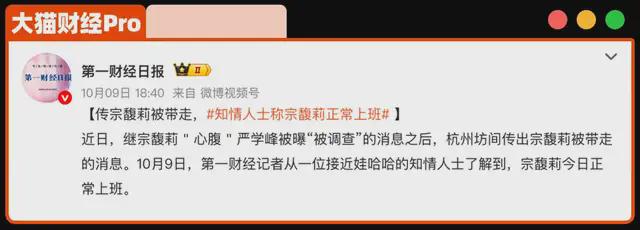 这两天,坊间一直流传,宗馥莉被带走。