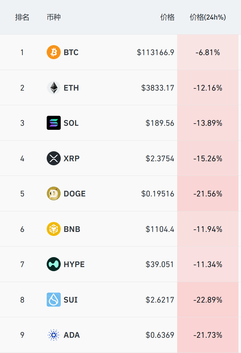 比特币一度跌破110000美元,截至10月11日7:53,比特币下跌6.81%,加密货币集体下跌,过去24小时超16万人爆仓。