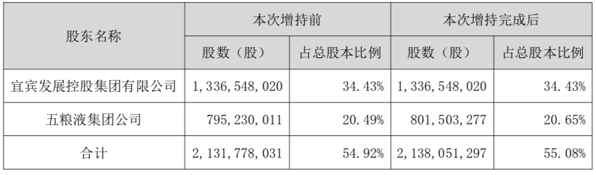 截至目前,本次增持计划已实施完成,完成后,五粮液集团及其一致行动人宜宾发展控股集团合计持有公司21.38亿股,持股比例增至55.08%。按照增持金额和增持股份数量来计算,此次五粮液集团的增持均价为127.53元/股。