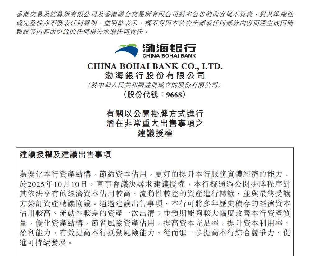 渤海银行将此次转让定位为“历史积存资产出清”,其背后的战略考量颇具深意: