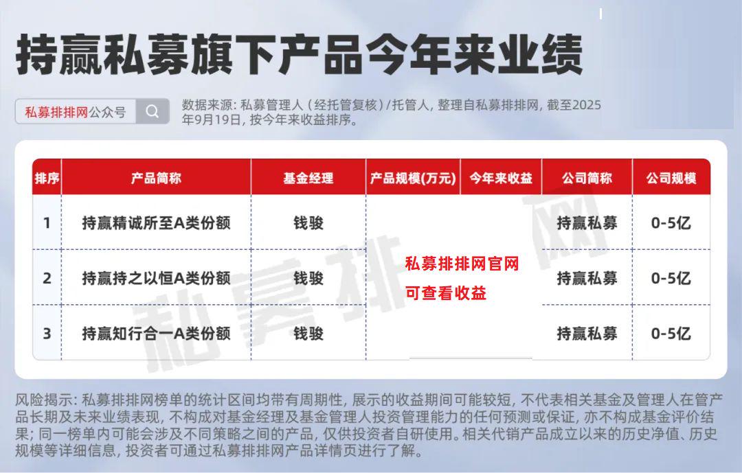 私募排排网数据显示,截至9月19日,基金经理钱俊旗下有业绩显示的3只产品,今年来收益均值约为***%,其中“持赢精诚所至A类份额”今年来收益高达***%,表现较为突出。