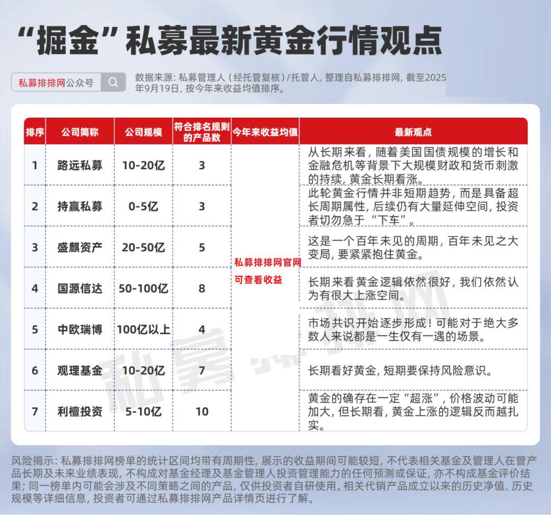 近些年来,在黄金飙涨的同时,也有一批私募管理人敏锐地捕捉到了这一趋势,比如中欧瑞博、国源信达、海南思瑞、盛麒资产、路远私募、持赢私募、利檀投资等私募通过深入的基本面研究,较早地完成了对这场“黄金盛宴”的布局,并实现较为亮眼的业绩表现。