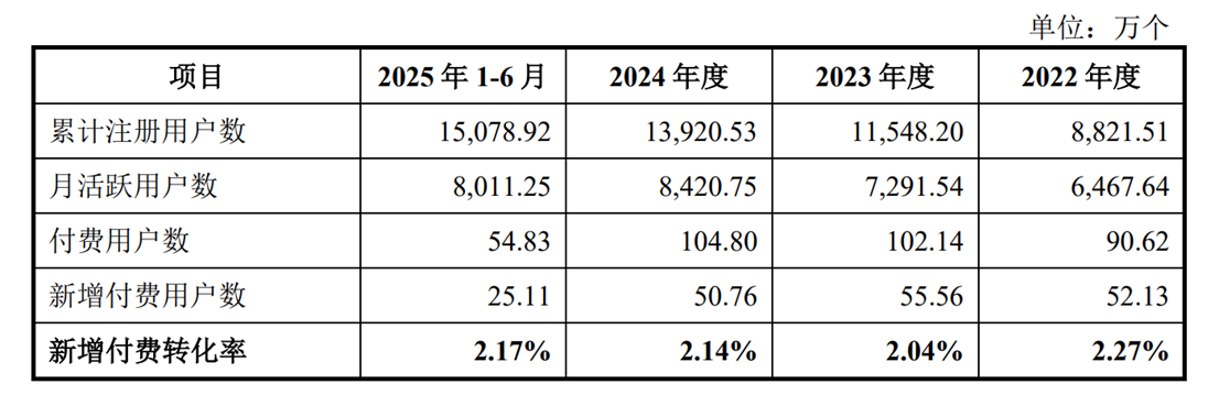 企查查招股书显示,近年来,企查查的用户数稳定增长,从2022年的0.88亿增长至2025年上半年的1.5亿;月活用户数从2022年的6468万增长至2025年上半年的8011万;2024年付费用户数达104.80万,2025年上半年达54.83万;每付费用户平均收入2024年为597.41元,2025年上半年为624.01元。