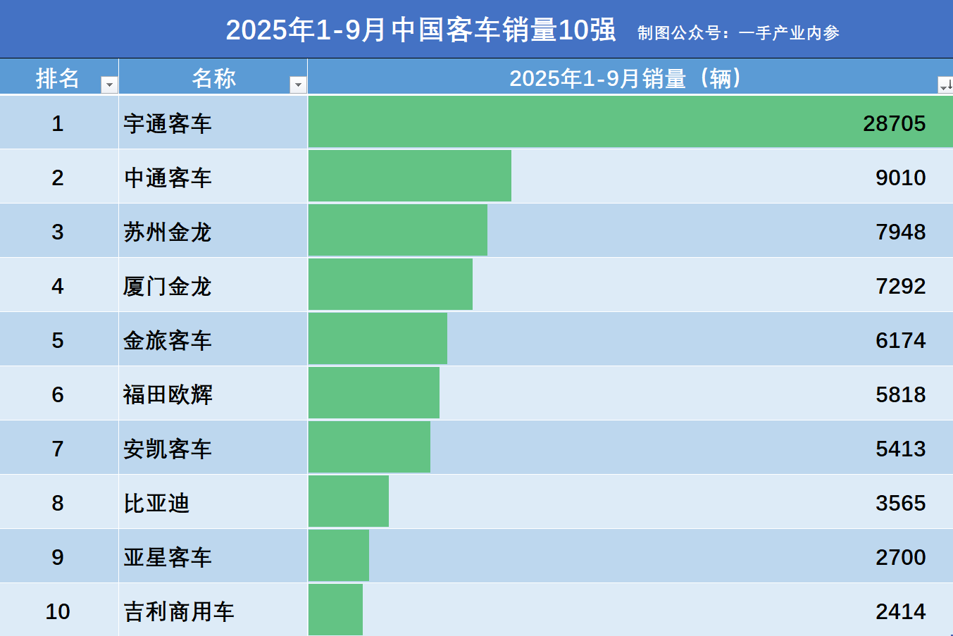 另附:2025年1-9月6米以上客车销量10强企业名单,数据源于:客车信息网。