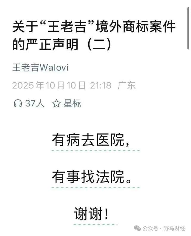 当日晚间,王老吉官方微信公众号再次发布文章,仅用12个字简短回应称:“有病去医院,有事找法院。谢谢!”疑指双方将直接对簿公堂来解决商标争议。