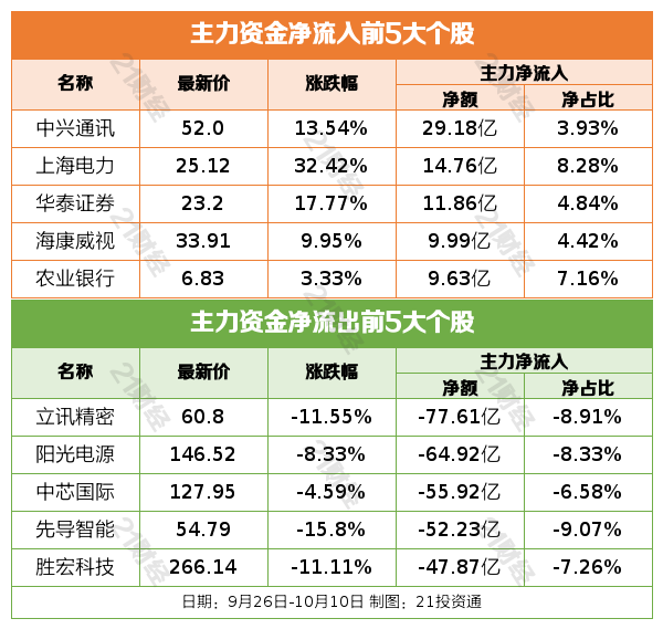 国庆假期后的两个交易日(10月9日—10月10日),A股三大指数涨跌不一。截至10月10日收盘,上证指数报3897.03点,周涨0.37%;深成指报13355.42点,周跌1.26%;创业板指报3113.26点,周跌3.86%。