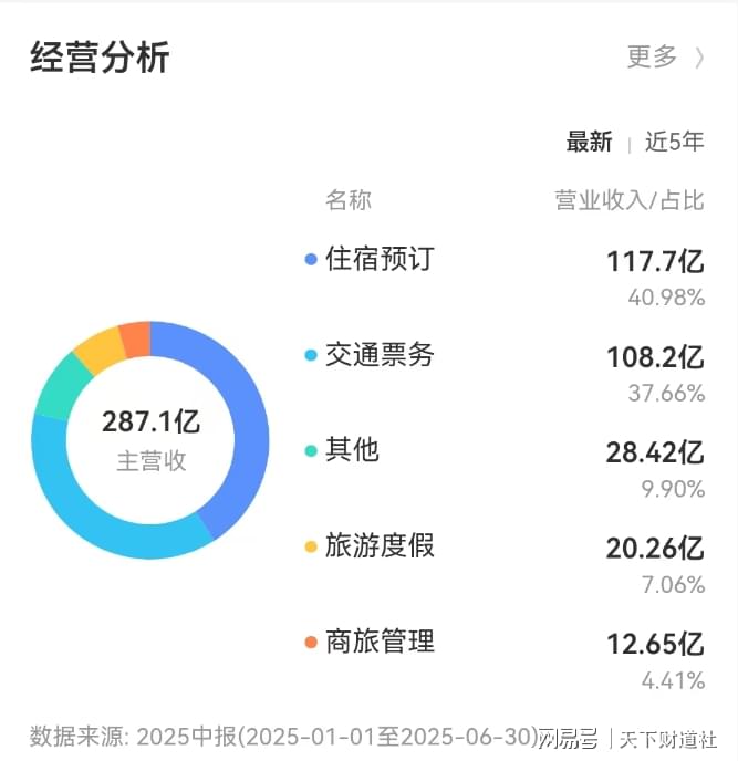 2025年第二季度,携程集团净营收达148亿元,同比增长16%;归母净利润48亿元,同比大幅增长26%。整个上半年,营收攀升至287亿元,净利润近92亿元,日赚超过5000万元,毛利率、净利率分别约81%、32%。